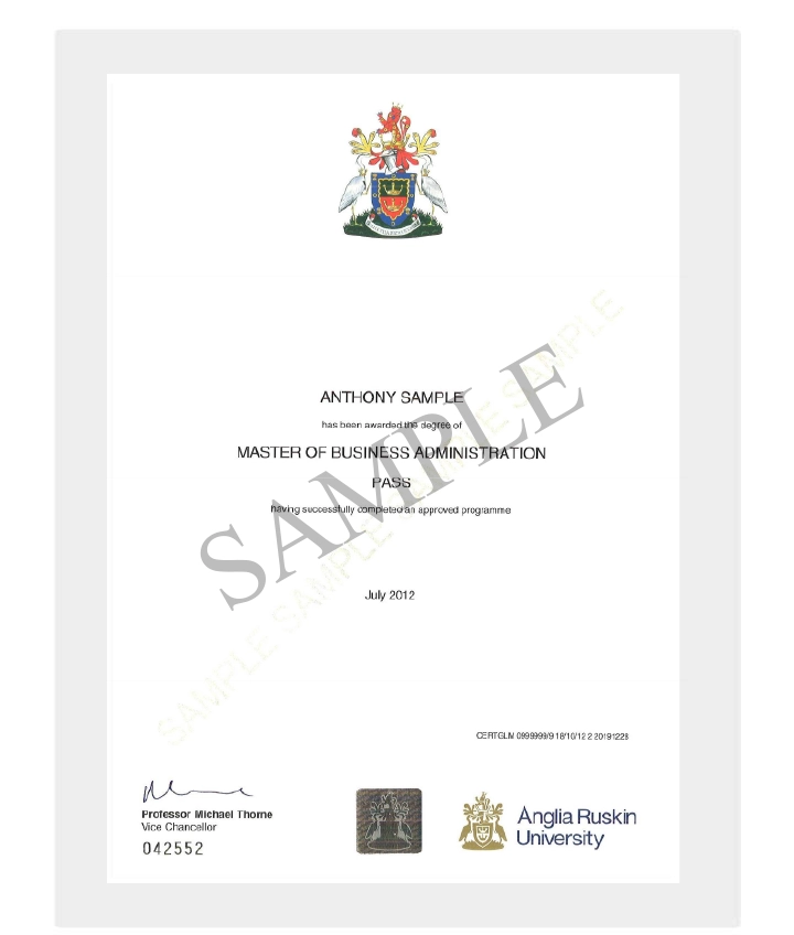 Earn an internationally recognized MBA from Anglia Ruskin University, UK, equivalent to a traditional full-time MBA.